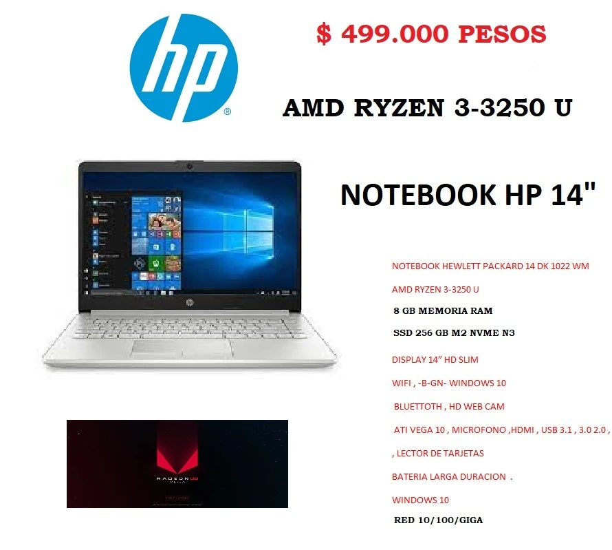 Adquiere este moderno Notebook Hewlett Packard 14 DK 1022 WM, un equipo ágil y eficiente con una pantalla delgada (Slim). Es ideal para el trabajo diario, la universidad o el uso doméstico, ofreciendo batería de larga duración y un disco SSD M.2 NVMe que asegura una carga de sistema ultrarrápida.